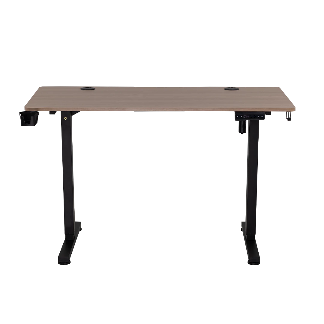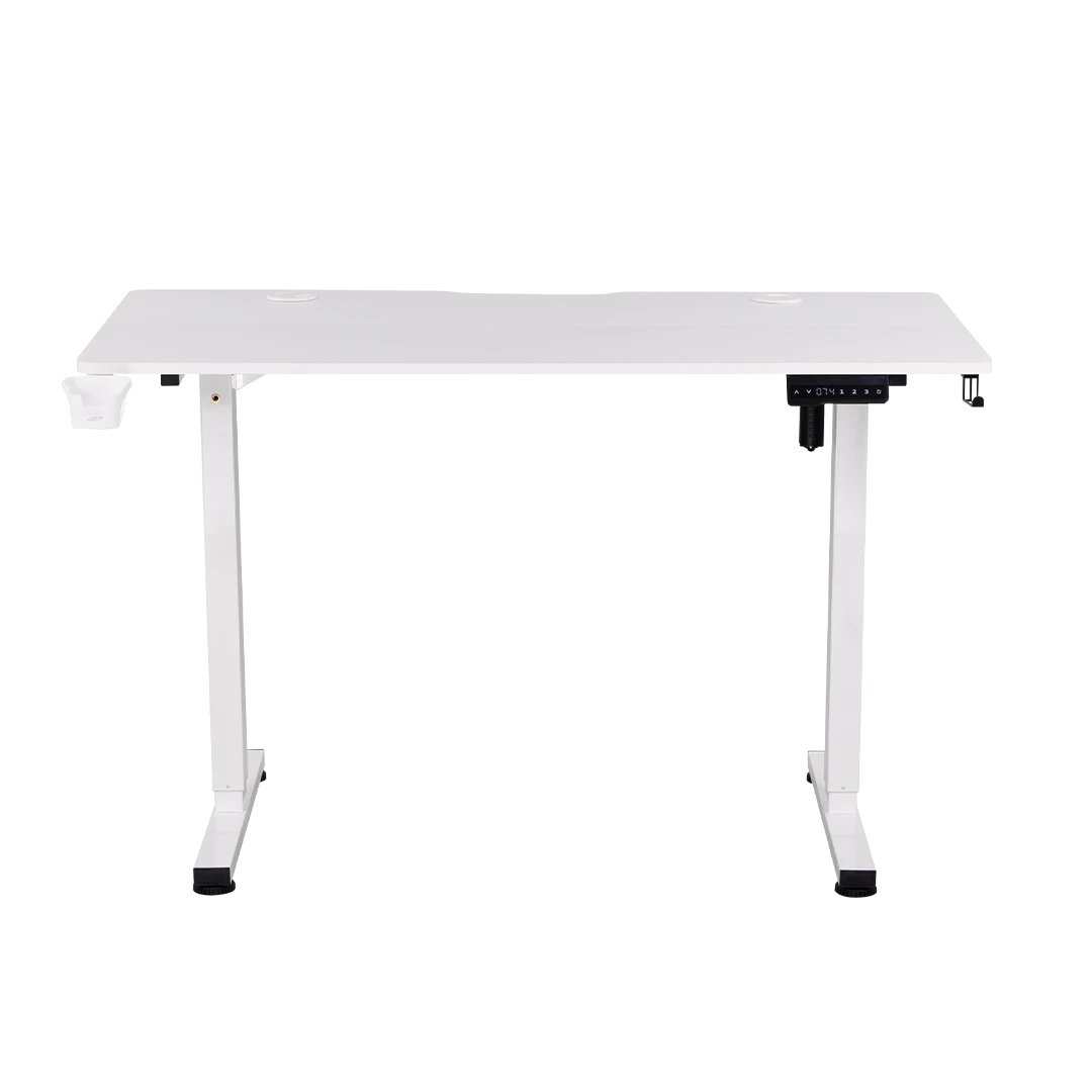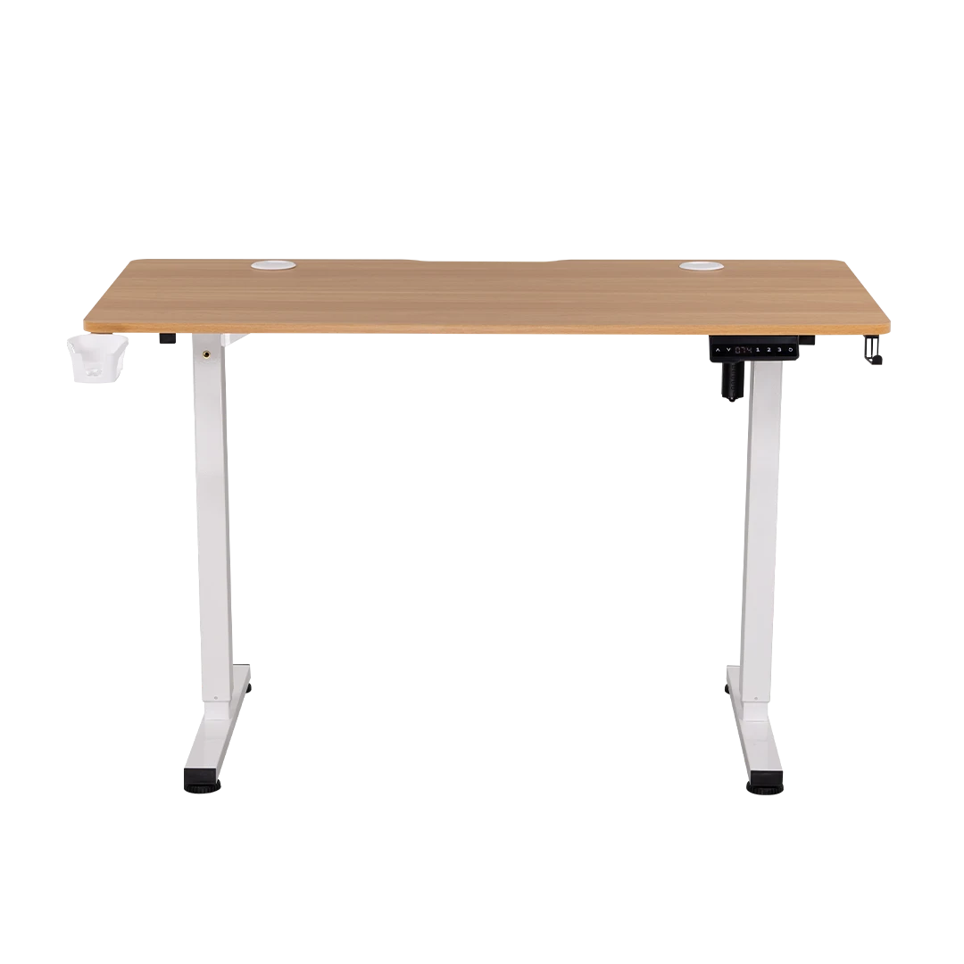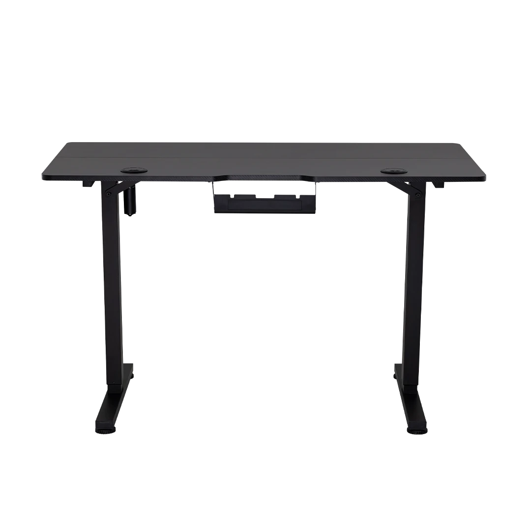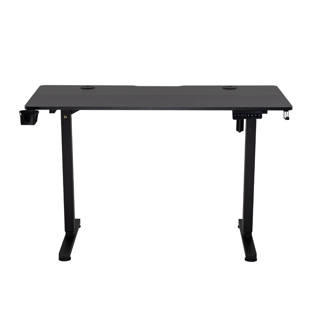โต๊ะเกมมิ่ง รุ่น NDO-02 ขนาด 120x60x1.5 CM. ปรับระดับความสูงได้ตั้งแต่ 74-118 CM. ด้วยระบบมอเตอร์เดี่ยว (Single Motor) รองรับการใช้งานได้ทั้งนั่งและยืน มีหน้าจอดิจิตอลและปุ่มควบคุมการปรับระดับ มาพร้อมฟังก์ชั่น บันทึกค่าความสูงได้ 3 ระดับ ท็อปโต๊ะ วัสดุ Particle board เคลือบด้วยเมลานิน สัมผัสเรียบเนียน โครงสร้างเหล็กมีความแข็งแรง รองรับน้ำหนักได้ 80-100 kg. มีที่แขวนหูฟัง และที่วางแก้วน้ำ ช่วยให้โต๊ะเป็นระเบียบ