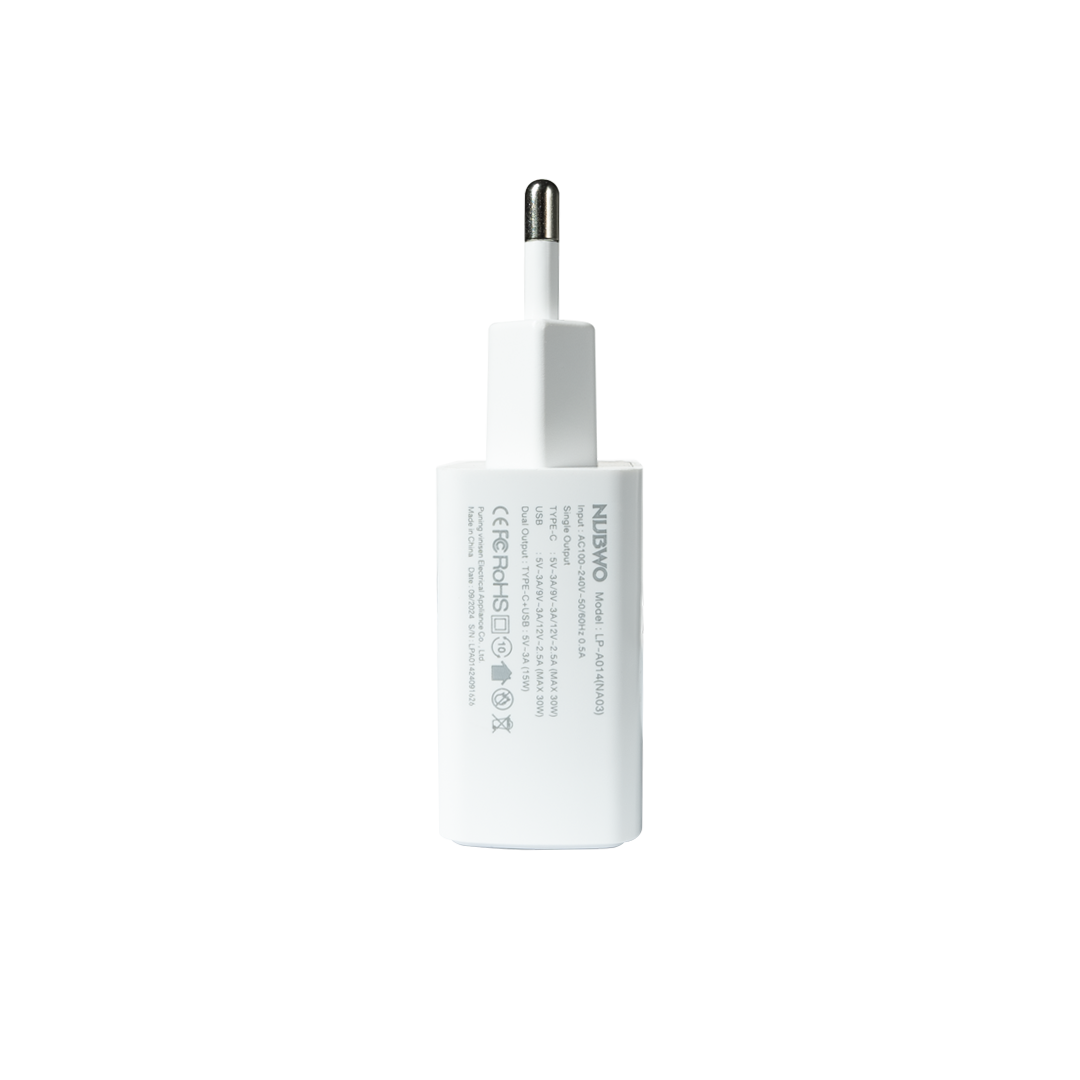 Adapter รุ่น NA03 หัวปลั๊กแบบ EU PLUG ใช้งานได้ทั่วโลก รองรับ USB-Port Output 5v ~ 3A PD30W Fast charge Single output พกพาสะดวก มาตรฐาน มอก. รองรับการใช้งานที่หลากหลาย สามารถชาร์จได้ทุกที่ รองรับกระแสไฟ 100 – 240V