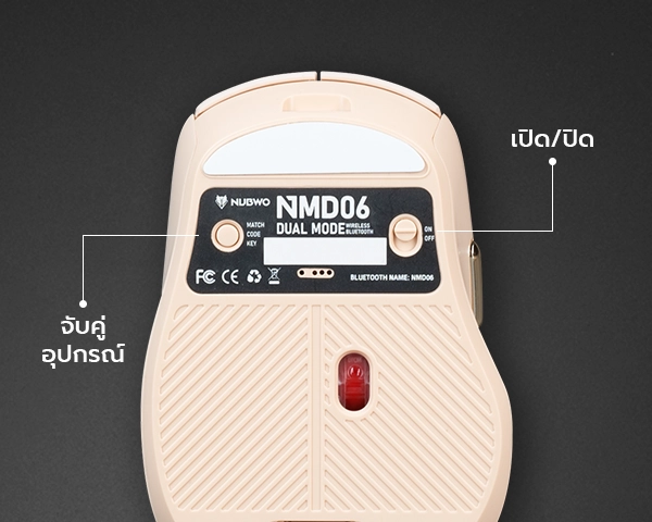 - ปุ่มฟังก์ชั่นใต้เมาส์ จับคู่อุปกรณ์ / เปิด/ปิด
