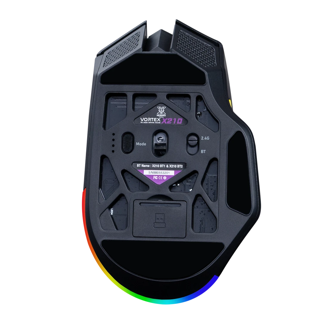 เมาส์ไร้สาย รุ่น X210 VORTEX ที่มีปุ่มกดมากถึง 9 ปุ่ม ไฟ RGB Lighting มาพร้อมโปรแกรมซอฟแวร์ เชื่อมต่อได้ทั้งเสียบสาย และไร้สายแบบ Wireless2.4GHz/Bluetooth5.2 สามารถปรับ DPI ได้สูงสุด 12000 DPI มาพร้อมแบตเตอรี่ 500 mAh ที่ใช้งานได้ยาวนานสูงสุด 70 ชั่วโมง แบตอึด ชาร์จไวเพียง 2-3 ชั่วโมง และรองรับการคลิ๊กสูงสุด 20 ล้านครั้ง