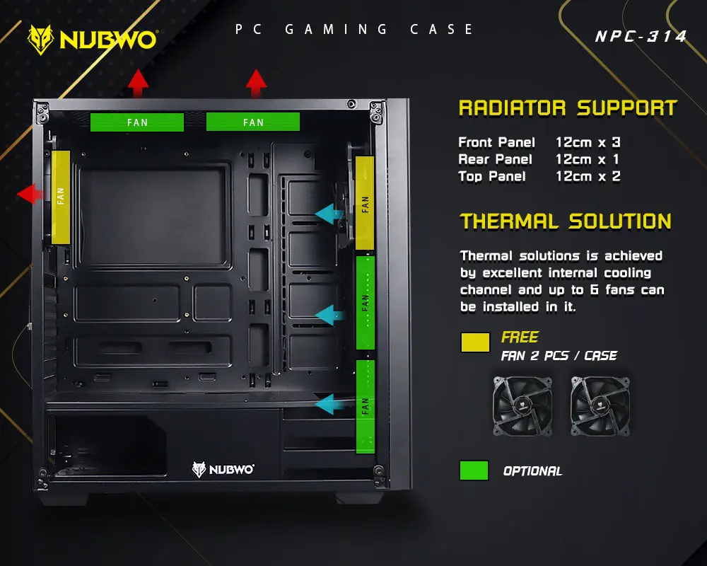 - พัดลมระบายความร้อน เป็นพัดลมใหญ่ ขนาด 140 มม. จำนวน 2 ตัว