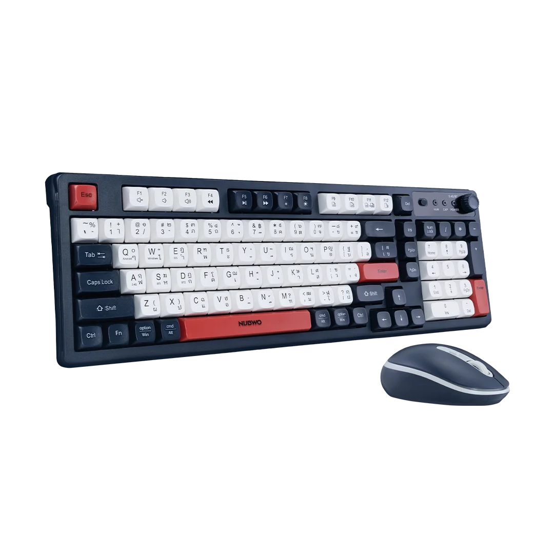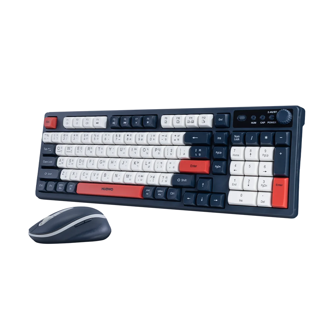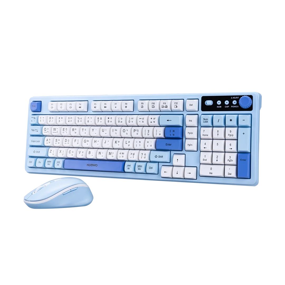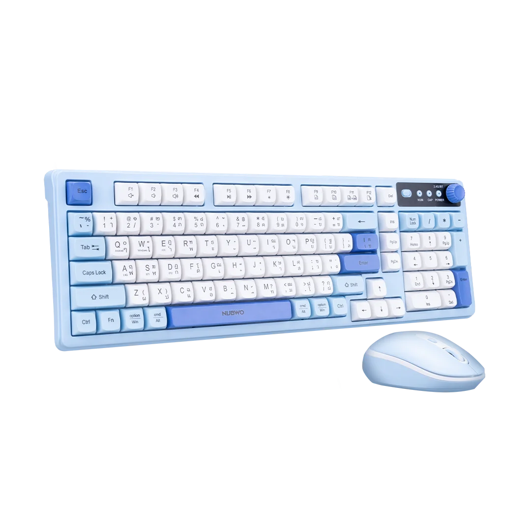 คีย์บอร์ดและเมาส์ แบบไร้สาย รุ่น NKM647 แป้นพิมพ์ 99 ปุ่ม ขนาด 96% คีย์บอร์ดปุ่มยาง เสียงเงียบ เชื่อมต่อได้ทั้งแบบ Wireless2.4GHz และแบบบลูทูธ Anti-Ghosting รองรับ 26 ปุ่ม พิมพ์นานก็สบาย ไม่ปวดข้อมือ เมาส์ปรับได้สูงสุด 1600 DPI พกพาง่าย ประหยัดพื้นที่ ใช้งานคล่อง ครบทั้งทำงาน เรียน หรือเล่นเกม