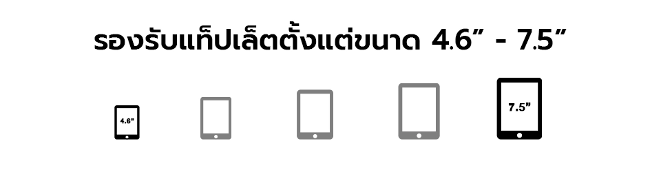 - รองรับ Tablet ตั้งแต่ขนาด 4.6 นิ้ว ถึง 7.5 นิ้ว